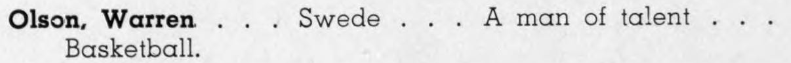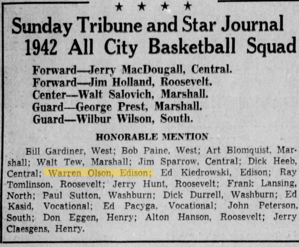 Warren graduated with the Class of June 1942. He was a 2-time letter winner in Basketball, and he earned city wide recognition for his ability on the court.