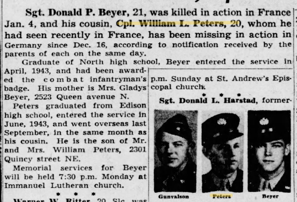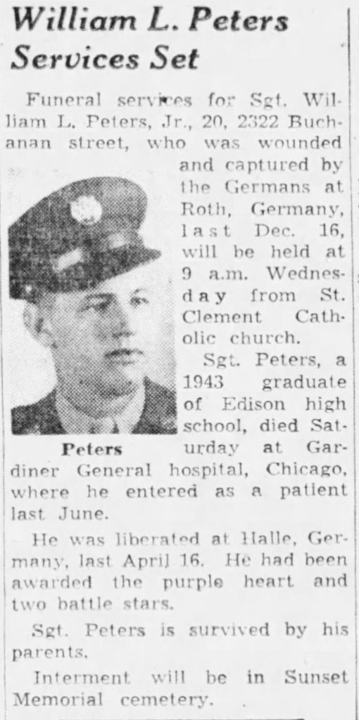 William was wounded and captured by the Germans in the first hours of the Battle of the Bulge.