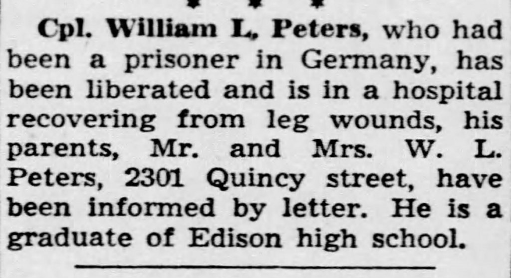 William would remain a POW until he was liberated by Allied forces on 16Apr1945.